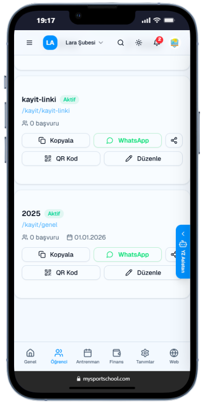 Web siteniz olmasa bile size özel kayıt linkleri oluşturun, yeni öğrencileri sosyal medya üzerinden kolayca toplayın.
