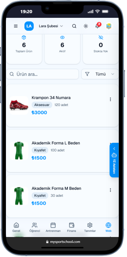 Kulübünüze ait forma, çanta ve antrenman ekipmanlarının stok ve ürün satışını dijital ortama taşıyın.