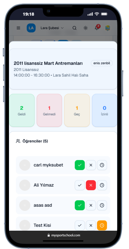 Eğitmenleriniz telefondan saniyeler içinde yoklama alabilir. Gelmeyen öğrencileri anında tespit edin.